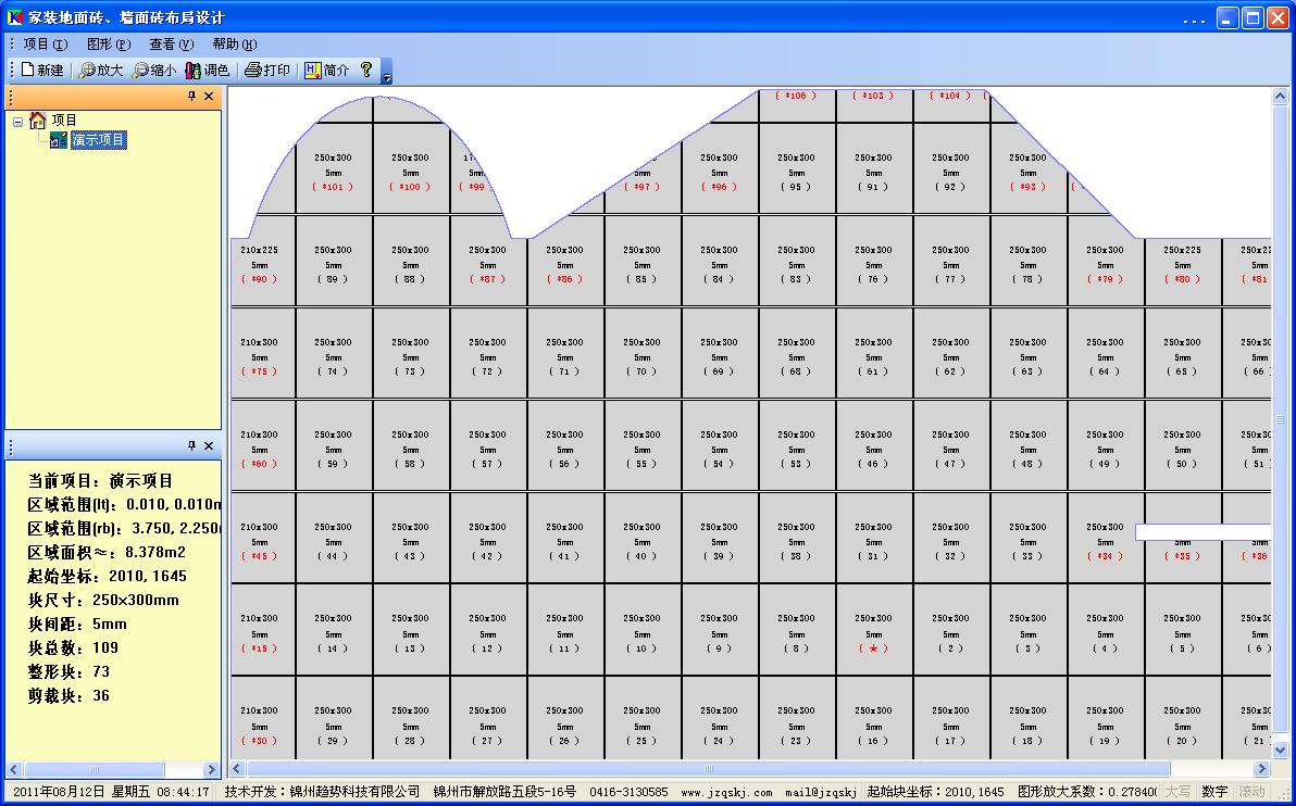 《家裝地面磚、墻面磚布局設(shè)計(jì)》 計(jì)算機(jī)軟件程序,可以實(shí)現(xiàn)任意形狀區(qū)域地面磚、墻面磚布局精確設(shè)計(jì)。使用時(shí)只需輸入地面、墻面實(shí)際尺寸,地磚、墻磚尺寸,磚與磚之間距離尺寸即可自動(dòng)完成設(shè)計(jì)、計(jì)算。每塊磚上均標(biāo)注編號(hào)、坐標(biāo)、長(zhǎng)寬和間距尺寸及是否為整形塊或剪裁塊。輸出計(jì)算結(jié)果包括整形塊數(shù)量、剪裁塊數(shù)量。對(duì)于工程化專業(yè)施工單位可以提供每個(gè)剪裁塊幾何尺寸精確描述,可以據(jù)此預(yù)先異地切割,實(shí)現(xiàn)裝修現(xiàn)場(chǎng)無(wú)切割施工。施工......[查看詳細(xì)]